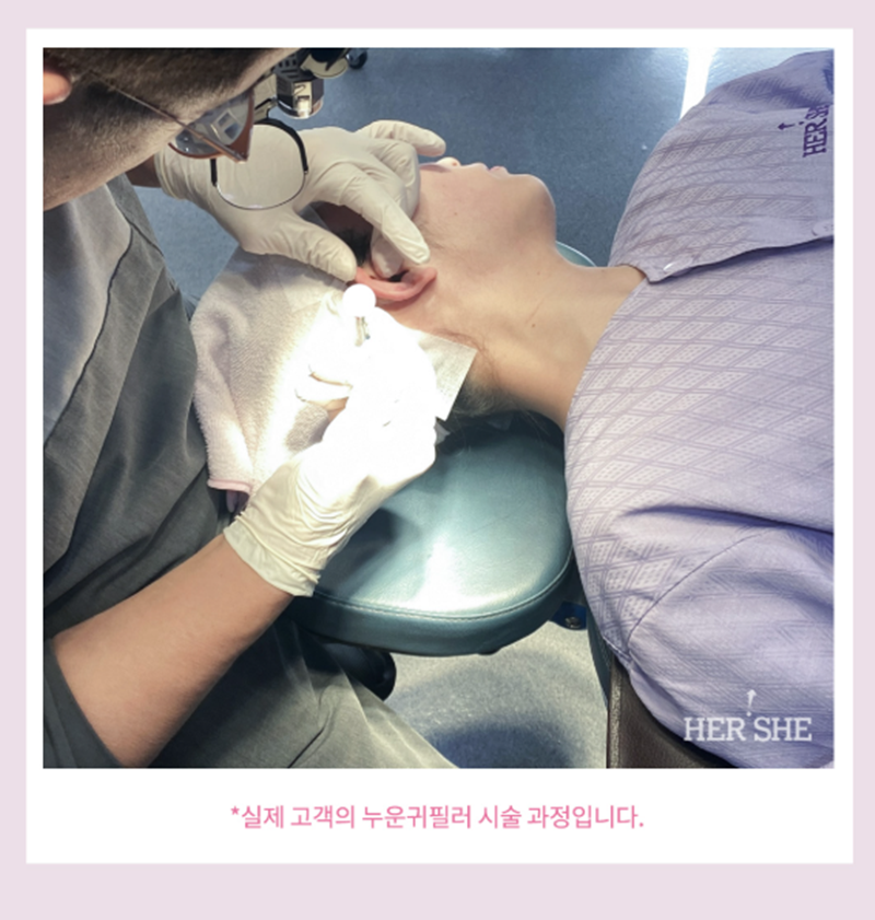 시술 직후(당일) 관리 1. 만지거나 비비는 행동은 피하기 : 필러가 안정화되기 전에 외부 자극이 들어가면 모양이 변형될 수 있으므로 손으로 만지기, 비비기, 귀 부분을 누르는 행동은 피하는 것이 중요합니다. 2. 귀를 덮는 이어폰, 헤드셋 사용 금지 : 압박되는 착용물은 필러 이동 가능성을 높일 수 있어 2주 정도는 사용을 피하는 것이 안전합니다. 3. 장시간 옆으로 눕는 자세 피하기 : 특히 누운귀필러 특성상 측면 압박이 가장 큰 위험 요소입니다. 초기 안정화 기간에는 정자세로 잠들기를 권장합니다. 24시간 이후 관리 1. 가벼운 세안 및 샤워 가능 : 세안, 샤워는 다음 날부터 가능하지만 강한 물살로 귀를 직접 때리는 행위는 피해주세요. 2. 화장 및 헤어스타일링 가능(조심스럽게) : 귀 뒤쪽까지 잡아당기는 헤어스타일, 귀를 세게 잡고 고정하는 행위는 최소 1~2주간 피하는 것이 좋습니다.