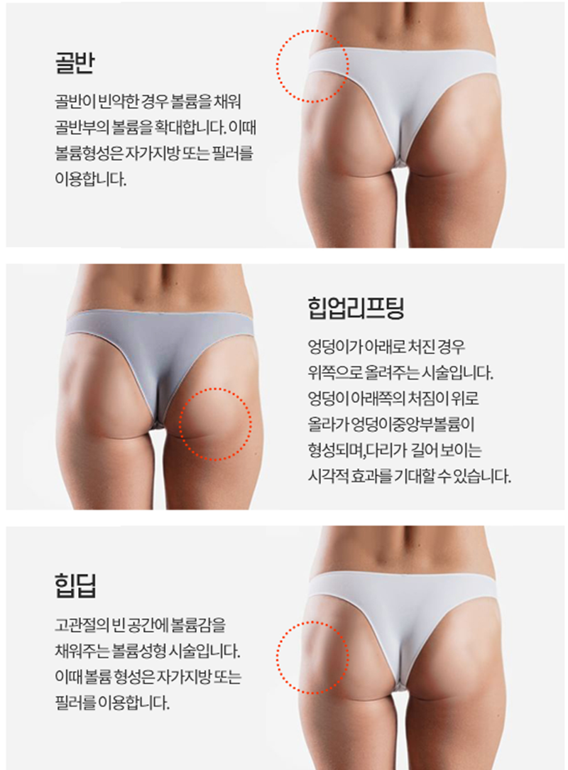 힙업리프팅, 탄탄하고 매혹적인 라인의 비밀 오늘은 힙업 리프팅에 대해 간단히 알아보도록 하겠습니다~! 체형 관리와 몸매 라인에 대한 관심이 높아지면서, 최근 들어 힙업리프팅이라는 시술이 많은 분들의 주목을 받고 있습니다. 단순히 예쁘게 보이는 것뿐만 아니라, 자신감 있는 실루엣과 건강한 인상을 함께 만들어주기 때문이죠. 오늘은 힙업 리프팅의 효과와 방법, 그리고 시술을 고려할 때 알아두어야 할 부분에 대해 간단히 알아보겠습니다. 힙업리프팅은 말 그대로 처진 엉덩이를 위쪽으로 끌어올려 탄탄하고 볼륨감 있는 힙 라인을 만들어주는 시술입니다. 나이가 들면서 탄력이 떨어지거나, 체중 변화로 인해 엉덩이가 아래로 처지게 되면 전체적인 몸매 비율이 무너져 보일 수 있습니다. 힙업리프팅은 이러한 문제를 개선해 다리가 더 길어보이고 허리와 골반의 라인까지 매끄럽게 정리되는 효과를 기대할 수 있습니다. 어떤 효과가 있을까? 1. 볼륨감 있는 엉덩이 라인 : 납작하거나 처진 엉덩이를 개선해 탱탱하고 풍성한 볼륨을 만들어 줍니다. 2. 다리가 길어 보이는 시각적 효과 : 엉덩이가 올라가면 허리부터 허벅지까지의 라인이 길어 보이면서 다리도 더 길고 곧아 보입니다. 3. 체형 균형 개선 : 허리, 골반, 허벅지와 연결되는 라인이 매끄러워져 전체적인 바디 밸런스가 좋아집니다. 4. 자신감 회복 : 청바지나 레깅스 같은 밀착 의상에서 라인이 살아나기 때문에, 자신감 있는 패션 소화가 가능해집니다. 힙업리프팅, 어떻게 진행될까? 힙업리프팅은 크게 2가지 방식으로 진행될 수 있습니다. 1. 자가지방 이식 : 복부나 허벅지 등에서 불필요한 지방을 채취해 정제한 뒤, 엉덩이에 이식하는 방법입니다. 지방을 활용하기 때문에 자연스럽고 부드러운 볼륨감이 장점입니다. 2. 필러 시술 : 체형이나 원하는 모양에 따라 엉덩이 특정 부위에 필러를 주입하여 즉각적인 볼륨과 리프팅 효과를 볼 수 있습니다. 시술 후 기대할 수 있는 변화 힙업리프팅 후에는 단순히 엉덩이 모양만 달라지는 것이 아닙니다. 체형 전체가 조화로워지고, 옷맵시가 달라진다는 점이 큰 장점입니다. 1. 청바지를 입었을 때 힙이 밋밋해 보이지 않습니다. 2. 힙이 올라가니까 다리가 더 길어 보입니다. 3. 골반 라인과 허리 라인이 확실히 살아납니다.